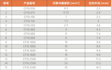 CF10系列:適合于高速運動,標準彎曲半徑拖鏈中使用。耐磨/耐彎曲/阻燃/環保/抗撕裂等性能優異,耐油類附著。常用于:3C,醫療,新能源,航天,軍工裝備等行業拖鏈系統的動力或信號傳輸。