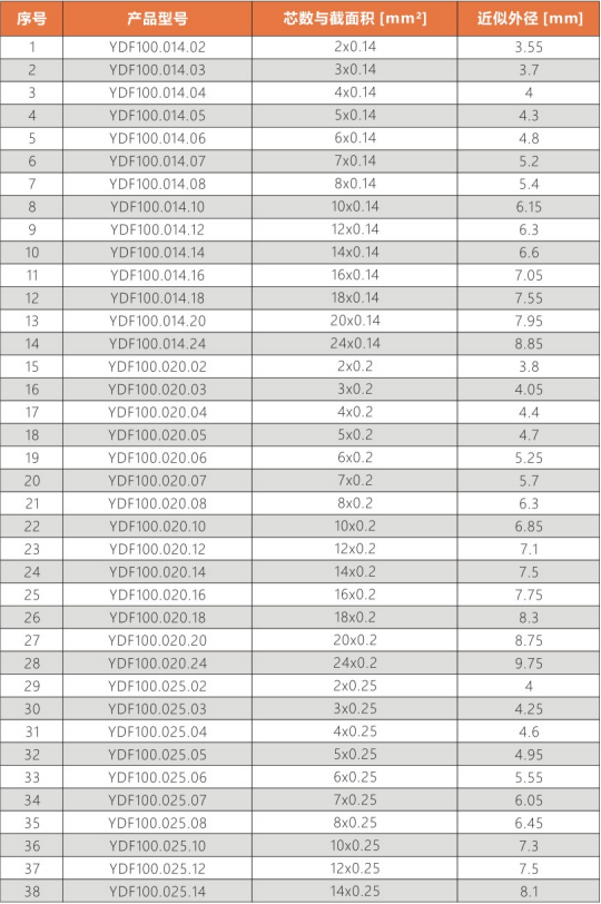 使用溫度范圍 : 非拖鏈內運動:-5 ℃ 至 105 ℃