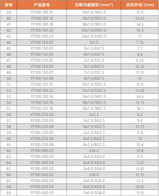 動力線導體絞合節距小,柔韌性強,耐彎折,耐磨損,抗撕裂,電纜阻燃和耐油,經過4KV電壓的測試,具有較高的電氣性能,產品適用于工業機械,暖氣及空調安裝系統,中等程度速率移動設備,連續性往復移動的大彎曲半徑拖鏈場合,機械負載的干燥或潮濕的空間。