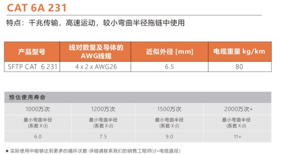 工業柔性網線具有抗彎折,耐油,防水,防紫外線,耐低溫等電氣使用性能,電纜采用多股超細精絞裸銅絲絞合,8芯4組雙絞雙屏蔽,特別適用于EtherCAT和EtherNet/IP應用,傳感器/執行器層面到網絡的無縫通訊,工業環境使用下的頻繁彎曲場合需要屏蔽無影響及信號穩定的信息傳輸,能有效抵抗電磁波干擾。PUR護套,具有耐多種礦物油脂,抗磨損和化學介質的性能,即使在極為惡劣的氣候條件下也能使用