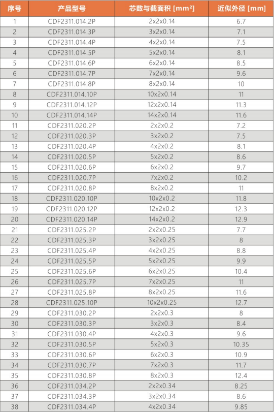彎曲半徑 : 非拖鏈內(nèi)運動:5.0X電纜外徑